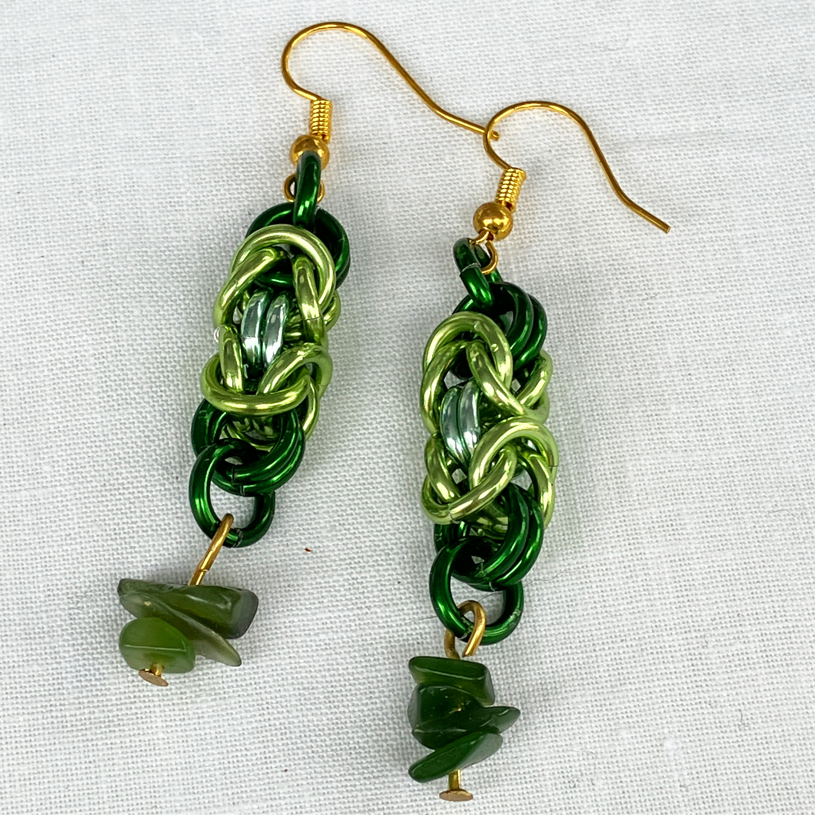 Chainmail and pounamu earrings