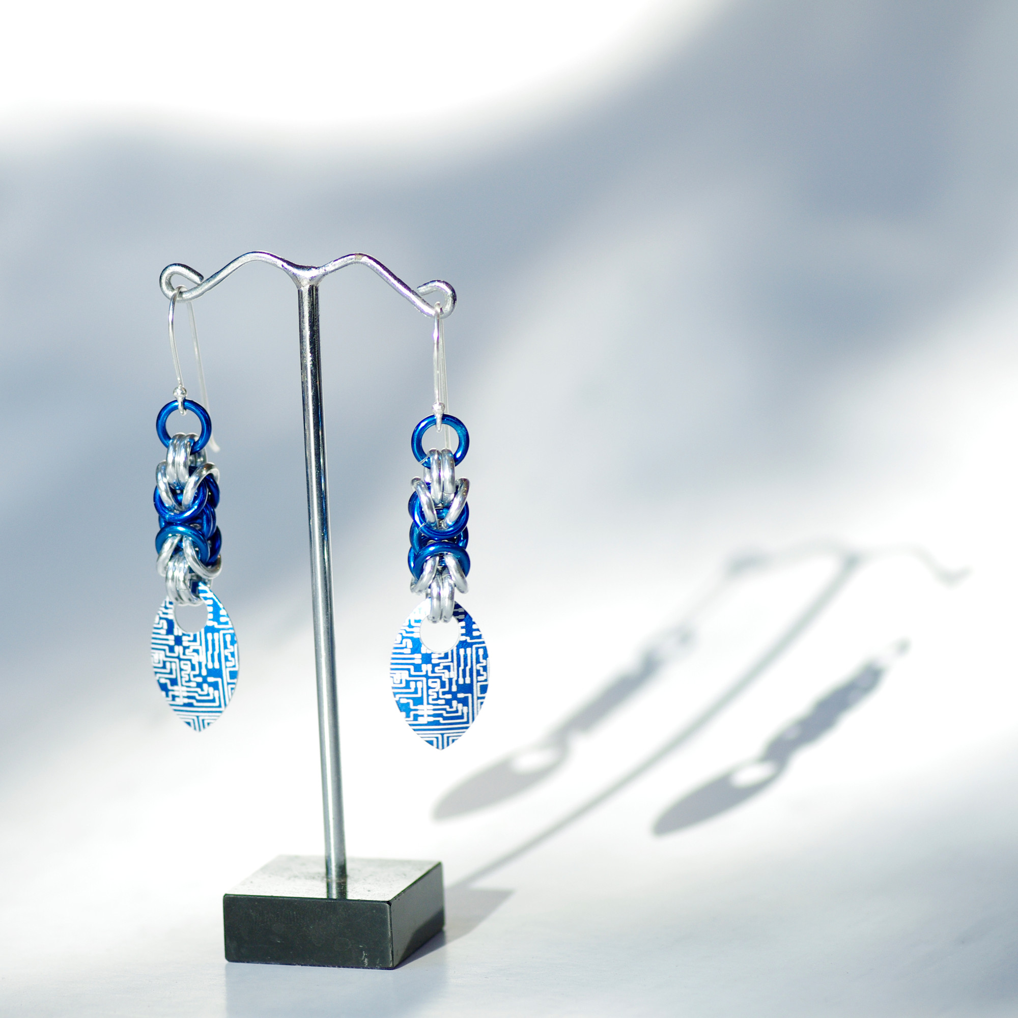 Blue circuitboard earrings