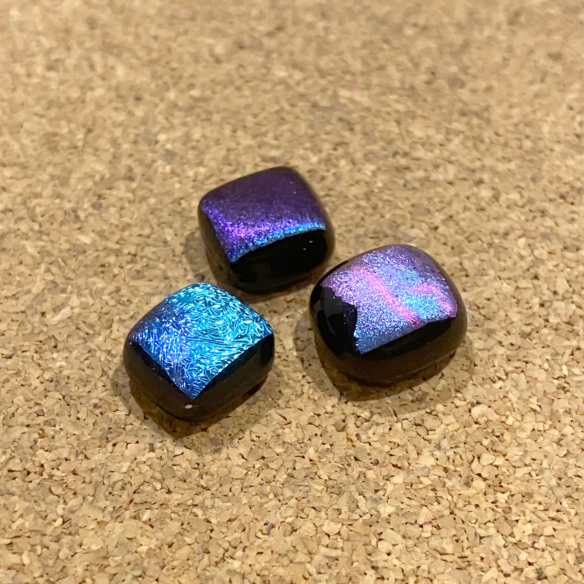 Dichroic fused glass studs (in progress)